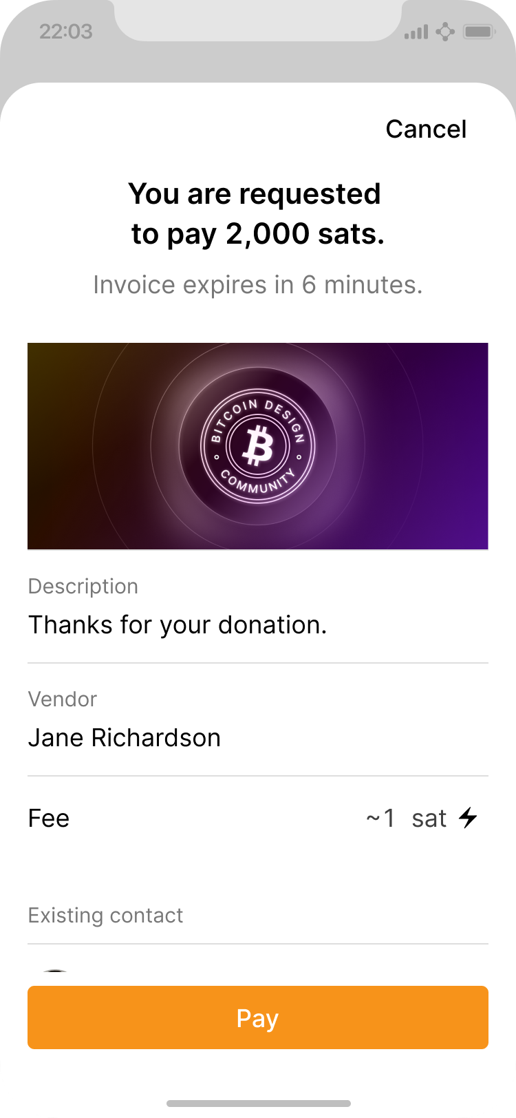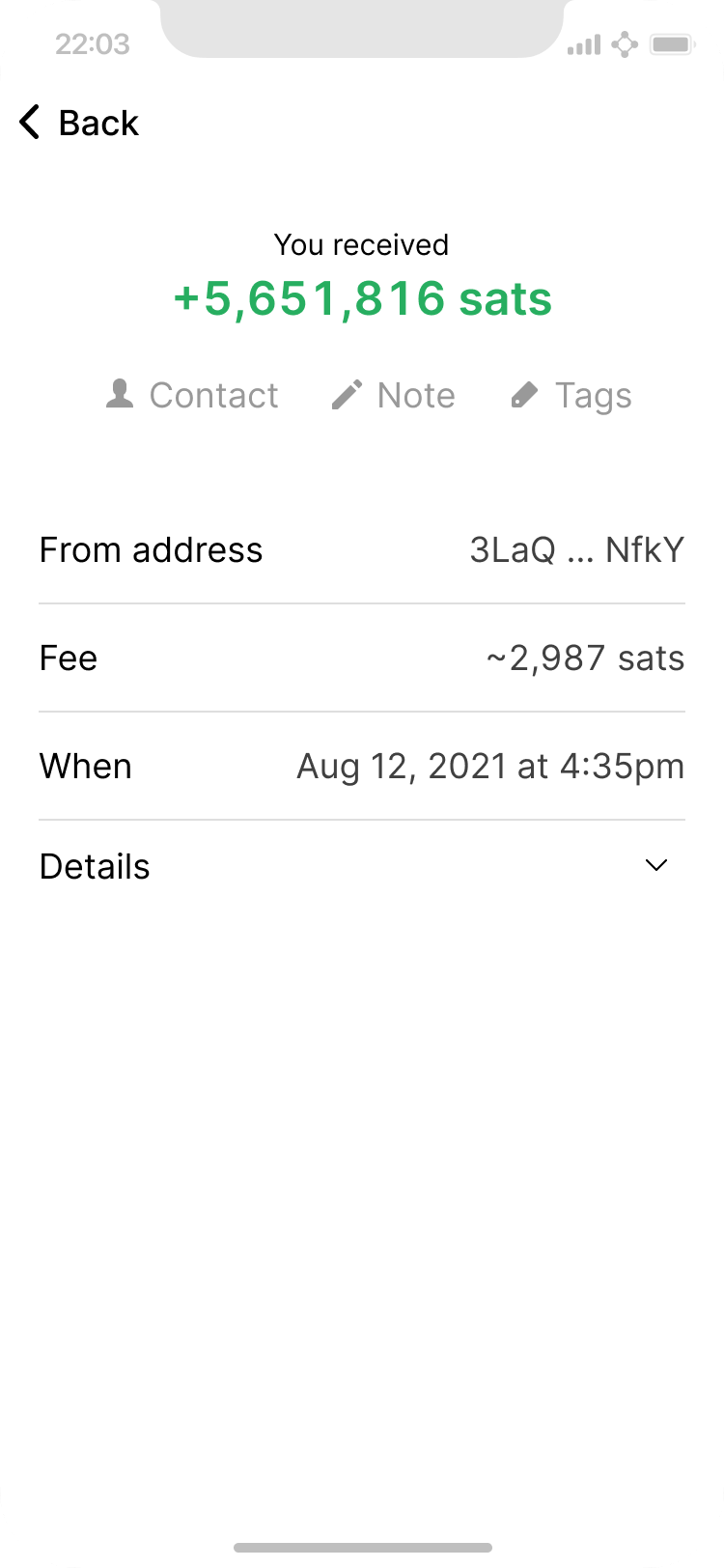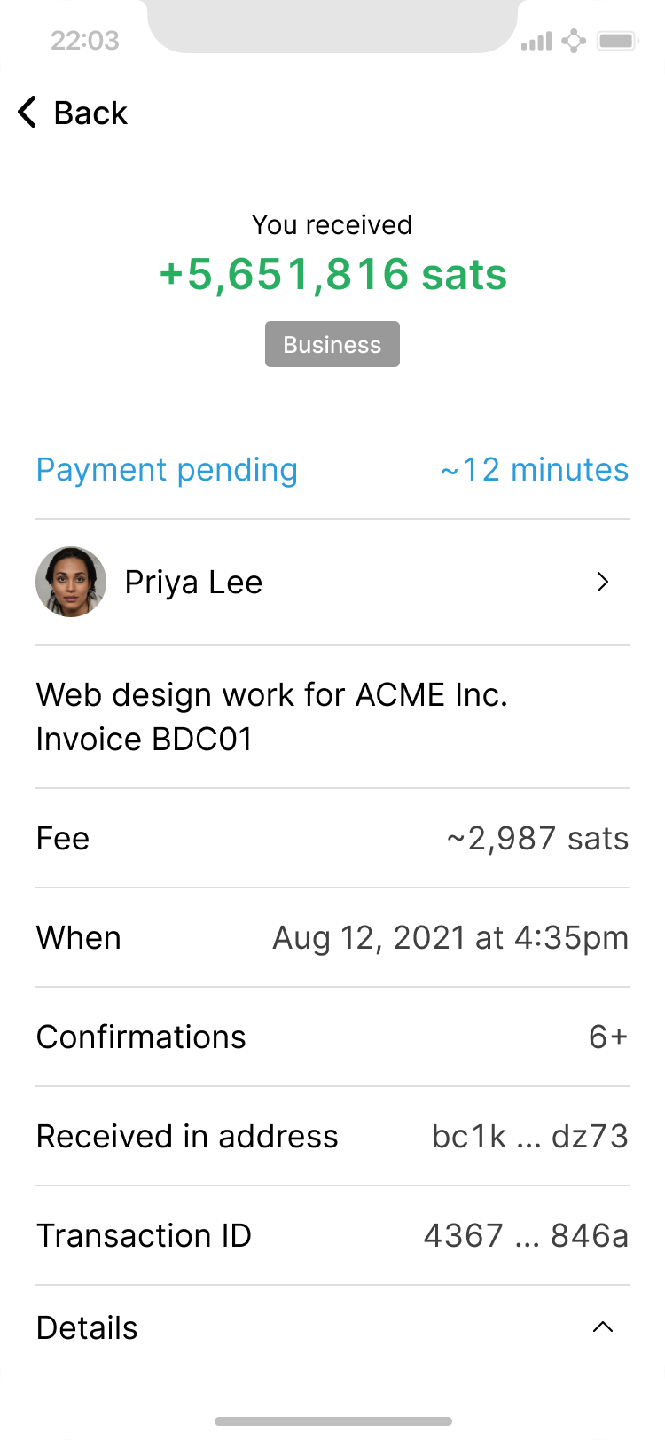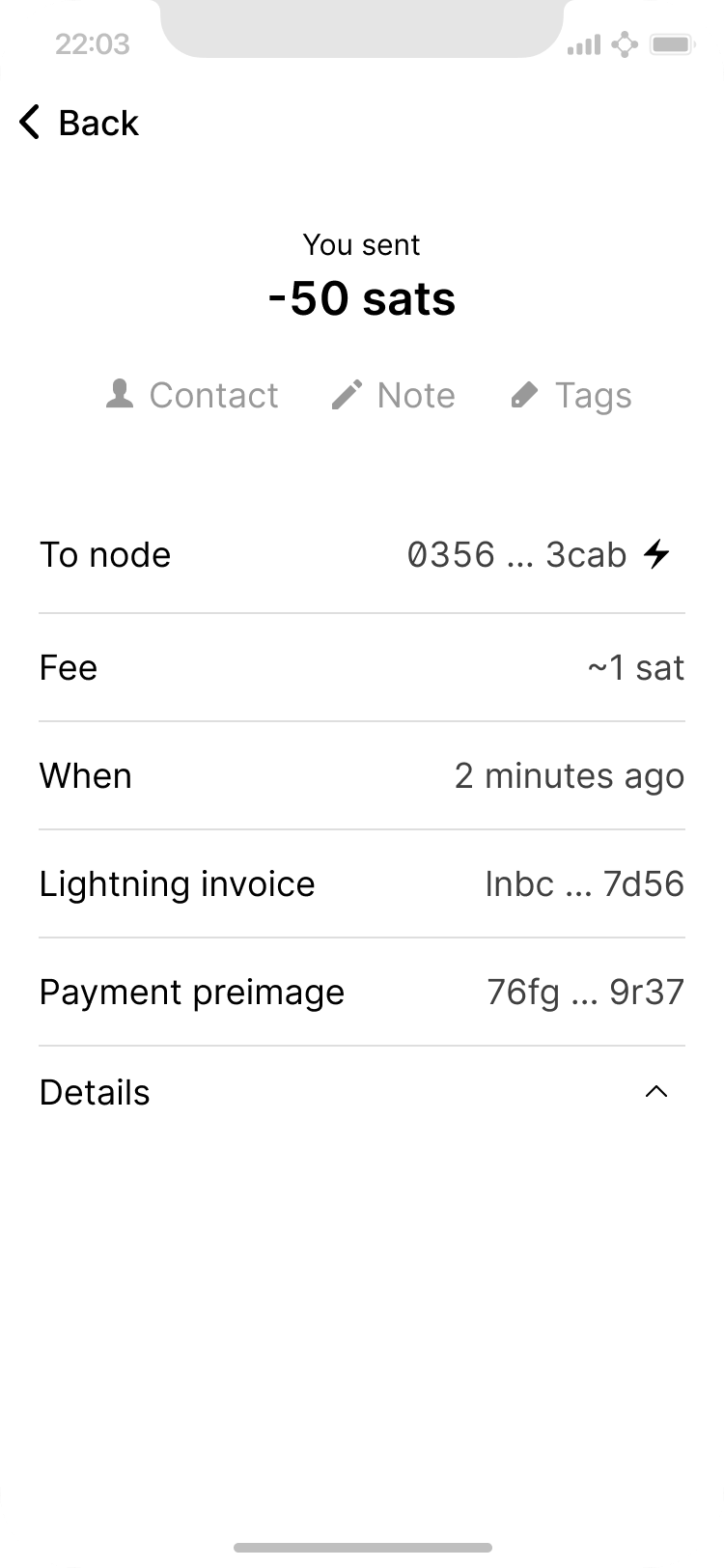Expanded details of lightning payment.