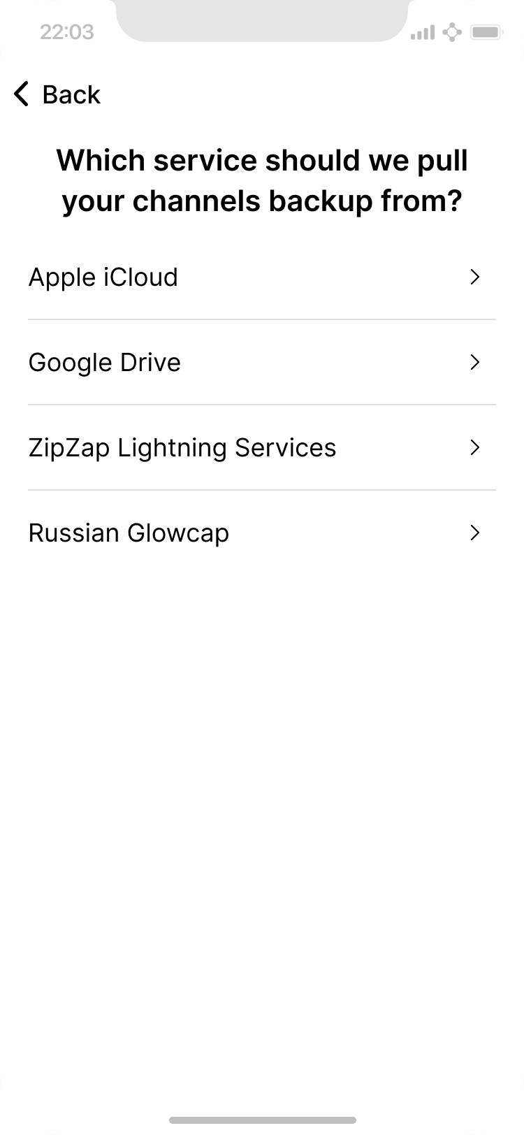 This involves a few more steps, but should work just as well as the auto cloud backup. This works great for basic recovery scenarios. In the manual restore, the primary difference is that the app asks the user to type in their recovery phrase. It will attempt to automatically pull their lightning channel state from cloud backup.