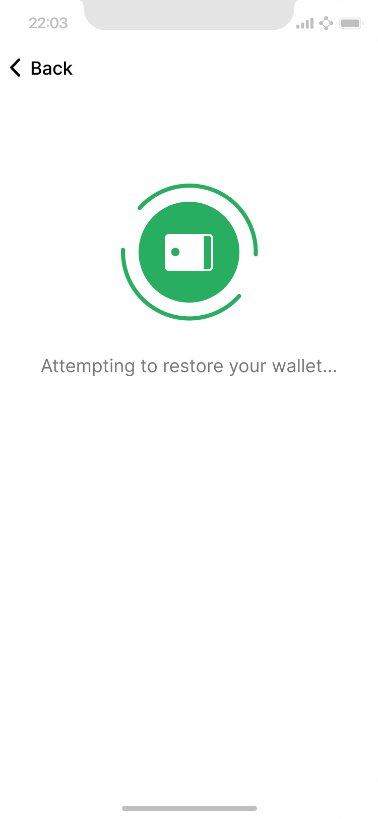User enters their recovery phrase. The app can notify them if a word is incorrect before they have finished typing it.