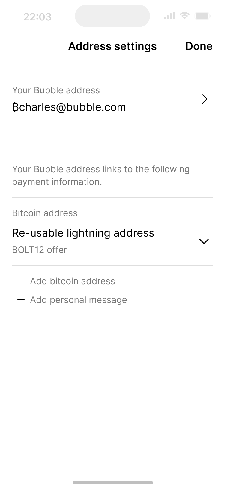 By default, this address is configured with the wallet’s own BOLT 12 lightning offer.