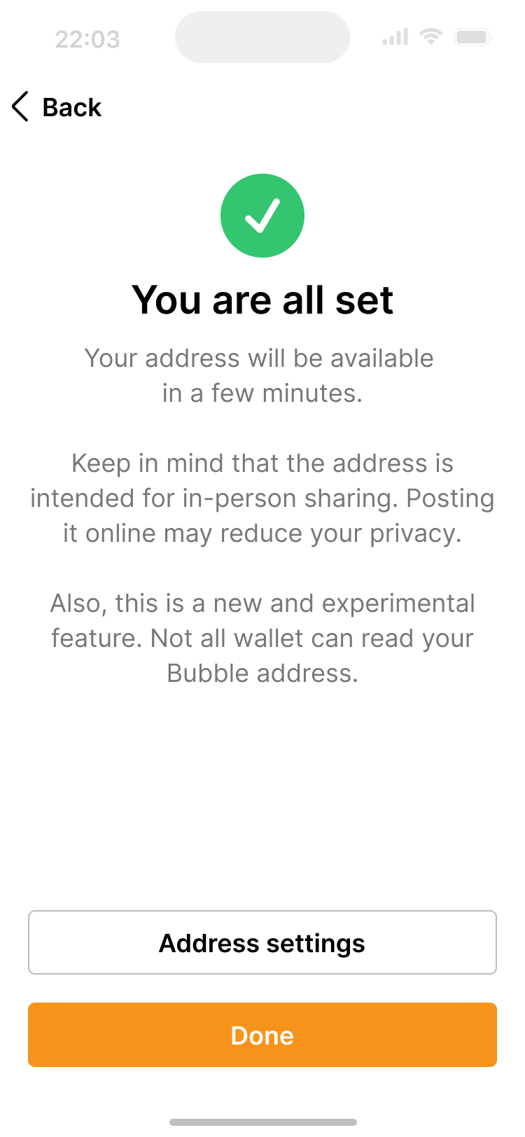 Framing the correct use of the address should be done right away and as early in the user flow as possible. This allows user to make informed decisions as to how and when to use the address. The information should include: